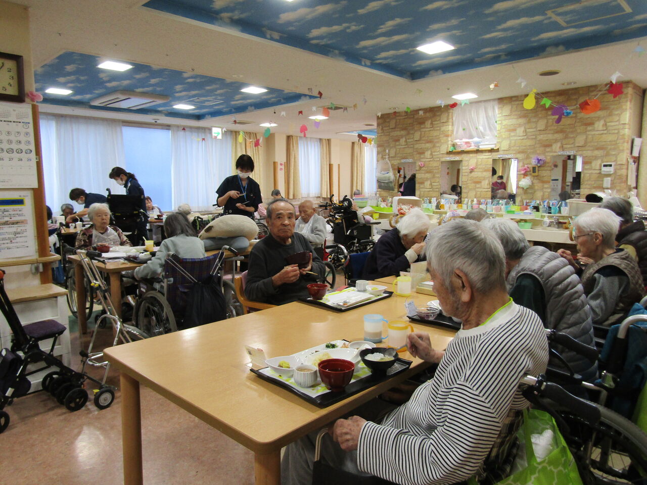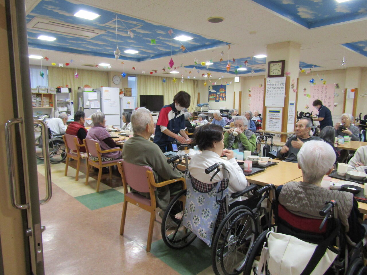 皆様は、ご入居者様同士でお話して楽しく和気あいあいと過ごされていらっしゃるお姿と