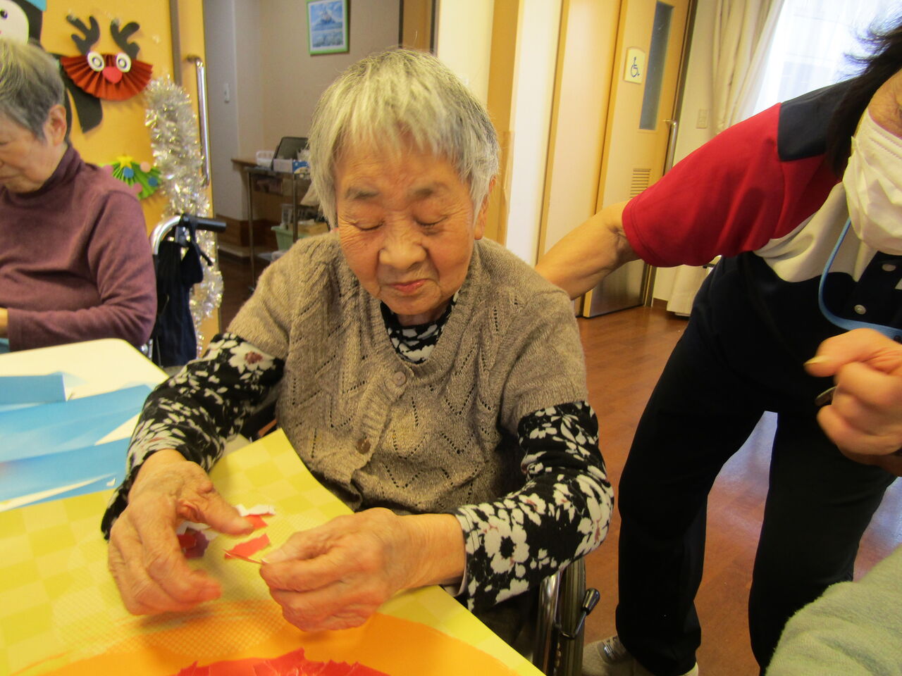 お隣の方がちぎって、お隣の方が貼ってと、とても素敵な光景でした