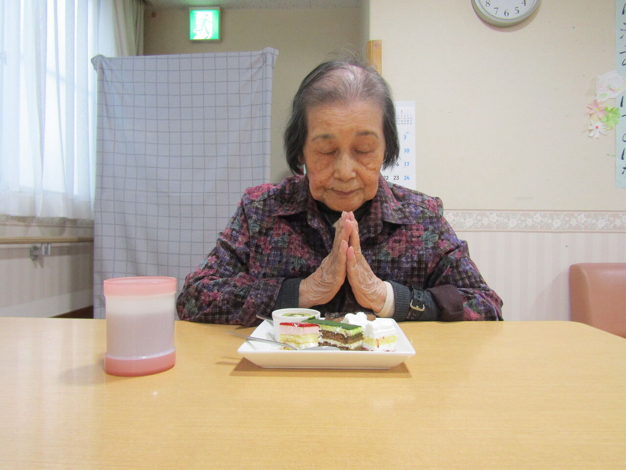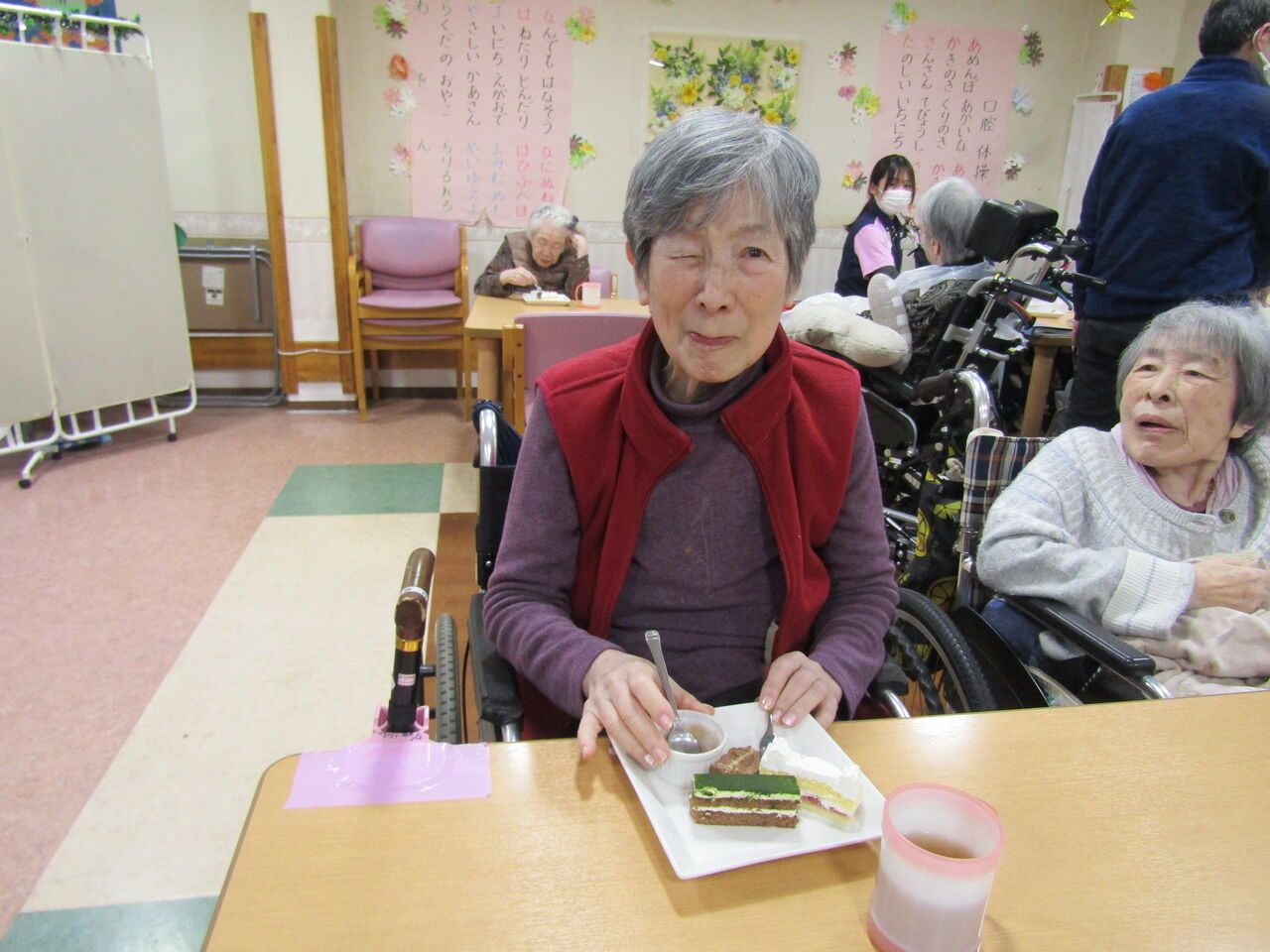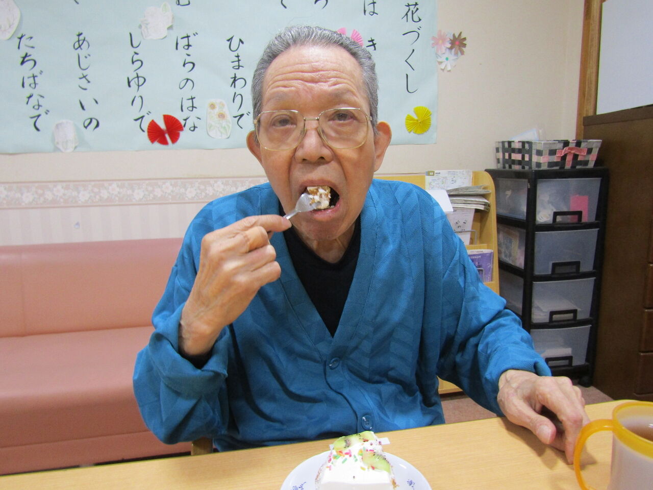 大好きなケーキを召し上がっていらっしゃるお顔はニコニコ笑顔で