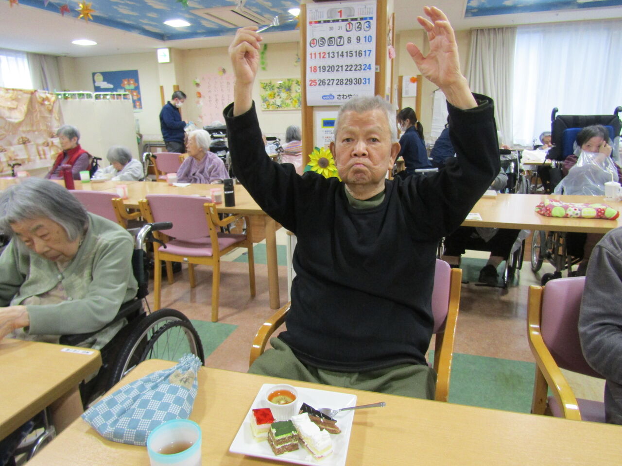 先日、お誕生日を迎えたご入居者様と共に💛ケーキブレイク💛を