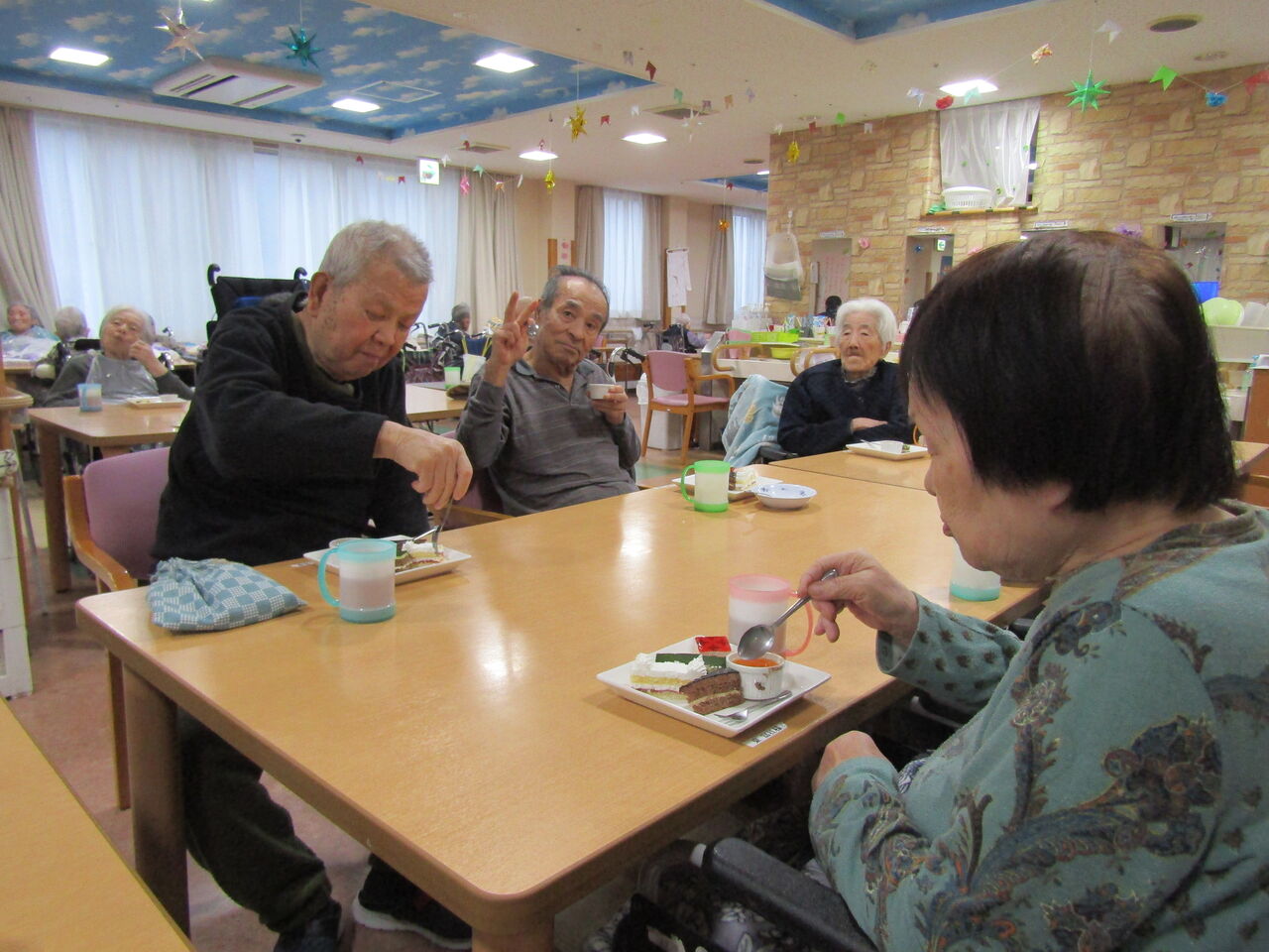 厨房さん手作りの色々のケーキを召し上がっていただきました